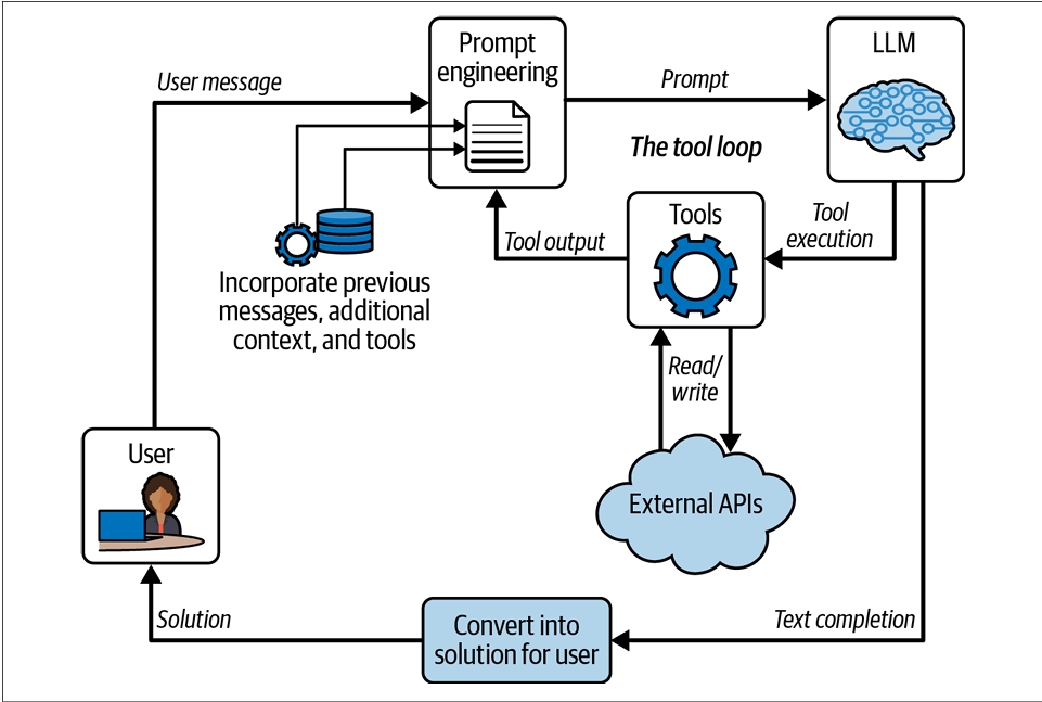 این حلقه میتونه فقط یک بار اجرا بشه (مثل همین مثال ایمیل) یا میتونه بارها و بارها تکرار بشه و اطلاعات قبلی رو هم یادش بمونه (مثل یه چتبات که باهاش حرف میزنید).