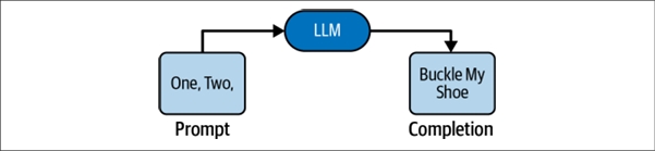 تو پایهایترین سطح، یک LLM یه سرویسه که یه متن از شما میگیره و یه متن به شما تحویل میده: متن ورودی، متن خروجی. به ورودی میگن پرامپت (Prompt) و به خروجی میگن تکمیل (Completion) یا گاهی وقتا پاسخ (Response). به همین سادگی!